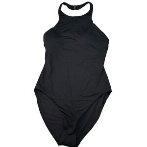 Andie Swim Med The Luzon One Piece Halter High Neck Swimsuit Black Eco Nylon NWT