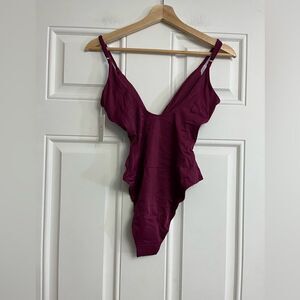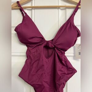 Andie Swim Santorini One Piece Swimsuit Cutout Low Back Plum Purple NWT Size S