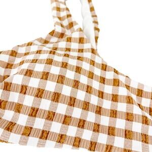 Andie Swim The Mandalay Bikini Top in Gingham Brown White - Size medium, new with tags!