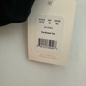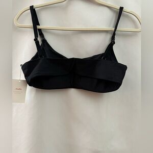 This Andie Swim The Riviera Bikini top is brand new and has never been worn. It has the original tags attached. It is black and women’s size medium. Some features: removable soft cups, adjustable straps, and pull on style - no clasp in back. Super cute!