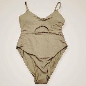 Andie Swim The Samoa One Piece Swimsuit in Olive Tan Cutout Keyhole Size L NWT