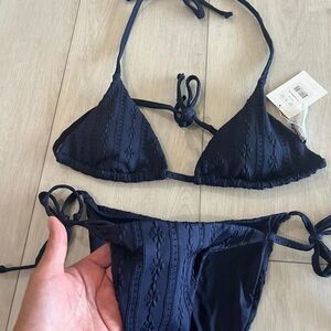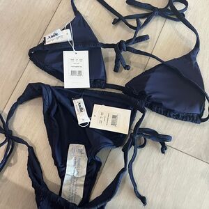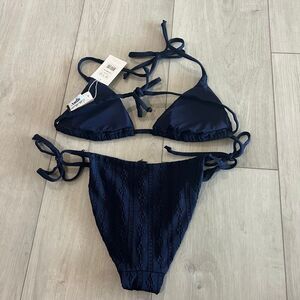 Andie Swim The String Bikini Top Eyelet Navy and bottom size M
