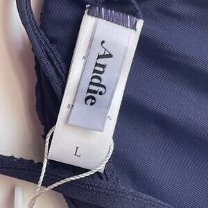 Andie Swim The String Bikini Top Women’s Large Navy Blue Eyelet Pattern NWT