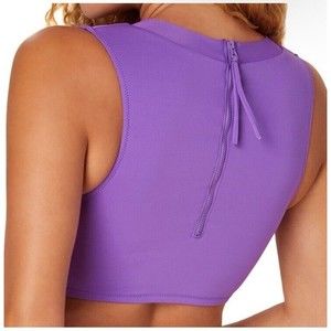 Elevate your beach look with this stunning Andie Swim The Venice High Neck Top in size L. This beautiful top features a solid violet color with trendy accents of a zipper. Made from a blend of polyester and spandex, it offers exceptional comfort and stretchability. Designed for women, this tank-style top is perfect for regular wear and beach activities. It is a must-have addition to your swimwear collection.