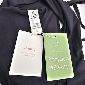 Andie swim womans size L The Newport bikini top in black bandeaux style swimsuit top adjustable spaghetti straps elastic at waist band with removable pads NEW with tags