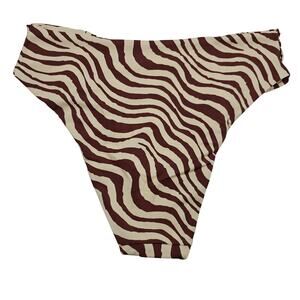 Andie swim womans size S The Ruched side bikini bottom bias stripe Truffle ruched side bikini swimsuit bottom high rise cheeky bottoms high cut legs brown and cream zebra style stripes NEW with tags and protective liner