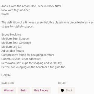 Andie Swim the Amalfi Eco Nylon One Piece in Black S NWT