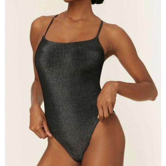 Andie Swimwear The Fiji One Piece Women's Black Ribbed Glitter (RARE) Size: XS