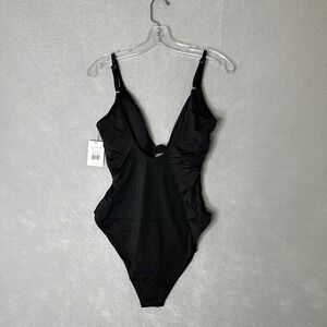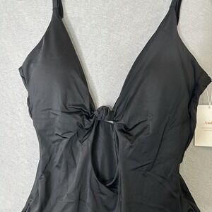 Make a splash in this stunning Andie Swimwear Santorini one-piece swimsuit. The black nylon and spandex material is both stretchy and comfortable, sculpting your figure to perfection. The low back and cut-out accents add a touch of intrigue, and the adjustable spaghetti straps ensure a secure fit. Perfect for beach vacations, cruises, or pool days, this solid black swimsuit will make you feel confident and stylish. Hand wash only and enjoy the features of removable pads, low back, stretch, and comfortable sculpting. Available in women's size Large, it's the ultimate choice for tropical getaways.