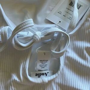 Andie THE PALOMA RIB White One Piece Adjustable Straps Padded Swimming Suit SZ L #1437
