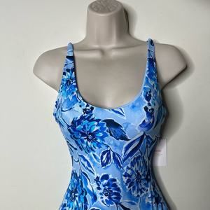 Andie The Baia Pullover One Piece Swimsuit Floral Blue Womens XS NEW