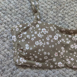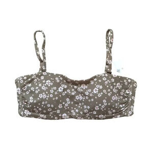Andie The Bora Bora Daisy Floral Bikini Top in Olive Sz M Convertible Strapless