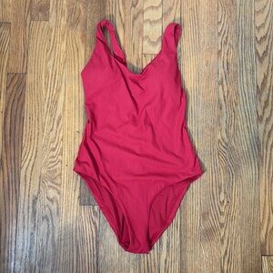 Andie The Ibiza One Piece Rib LT Swimsuit Flame Red size M NWT long torso