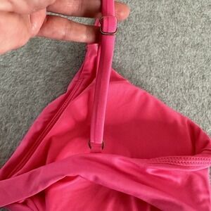 Andie Swimwear's Santorini Top is a classic triangle bikini top made of Nylon and Spandex. It features adjustable spaghetti straps and removable pads for added comfort. The stretchy material ensures a comfortable fit, while the solid pink color and tropical theme make it perfect for beach, resort, or pool wear. This bikini swim top is available in size XL and is hand wash only.
