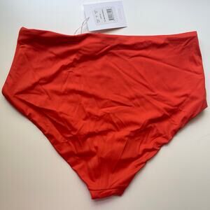 High-waisted bikini bottom. Vibrant red color. Comfortable fit. Perfect for beach days.