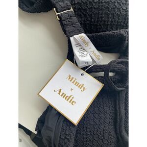 Andie x Mindy The Amor Bikini Top Womens XL Black Textured Beach Swimwear Beach