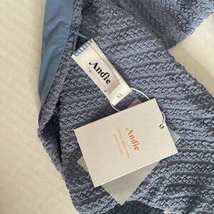Andie The Cheeky Bikini Bottom Women XL Blue Ruched Lined Swim Coastal Nautical