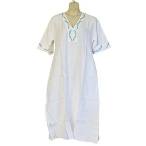 Andie x Fanm Mon Kepez Embroidered Linen Maxi Kaftan Dress Sz XL NWT