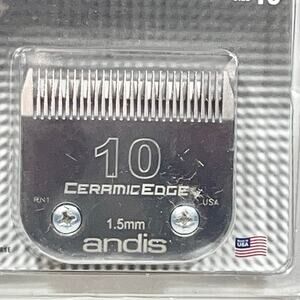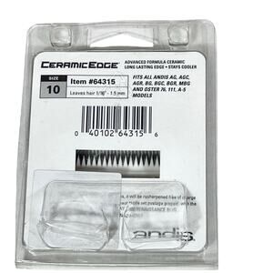 Introducing an Andis CeramicEdge steel pet clipper blade, Size 10, designed to leave hair 1/16" in length. This blade features advanced formula ceramic for a long-lasting edge that stays cooler during use. Compatible with all Andis AG, AGC, AGR, BG, BGC, BGR, MBG models and Oster 76, 111, A-5 models. Item is New.