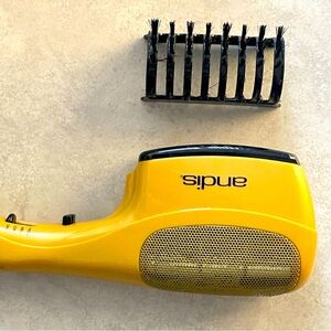 This yellow Andis Ceramic lonic Styler 1875-Watt Hair Dryer makes a smart addition to a collection of beauty supplies. With it, you can achieve a multitude of ditterent hairstyles, from elegantly waved to playfully curled.