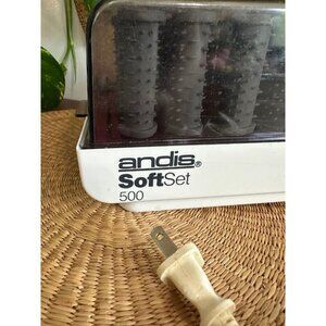 Classic Andis SoftSet 500 set with heated rollers and original storage case. Great for creating soft, voluminous curls with ease—just plug in, heat up, and style!
