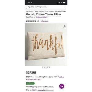 Come in from the cold, sit down by the fireplace with a hot mug of tea, and lean up against this seasonal throw pillow. Made from 100% cotton, it has a textured beige surface with “thankful” stamped on the front in a mustard-hued cursive script. Rectangular, this pillow looks great resting on a sofa or an armchair. The cover is removable with a zipper closure for easy hand-washing, while the polyfill insert gives you plenty of support as you hang out with family or friends.