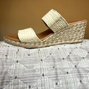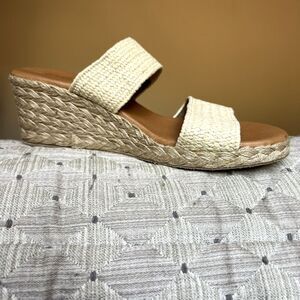 André Assous Nori Espadrille Raffia Wedge Heel Sandals w/ Jute Straps EU 37 US 7