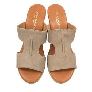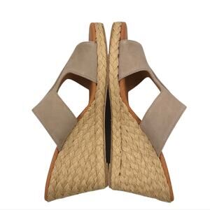 Lightly padded leather insole, Suede upper, Espadrille Wedge, Smooth leather sole. Approximately 3" heel, 0.5" platform.