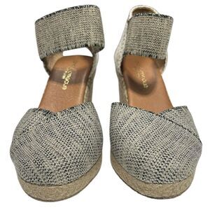 Andre Assous Beige & Black Espadrille Wedge Sandals Size 7 Made in Spain