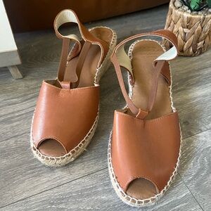 Andre Assous Dainty Peep Toe Espadrille Wedge Sandals in Cuero Tan Size 9 NWOB!