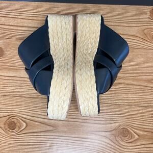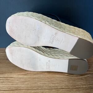 Andre Assous Dark Blue Leather Espadrille Platform Slip On Wedge Sandals 39 EU