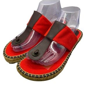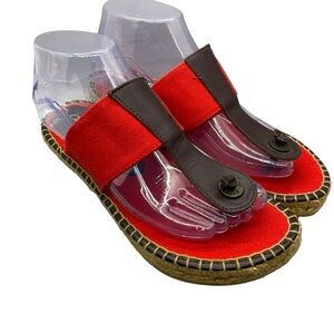 Andre Assous Flip Flop Espadrille Sandals Red Brown Euro 39 Made in Spain