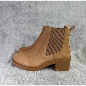 Andre Assous Gemma Women's Ankle Boot Block Heel Brown Suede Sock Size 9.5