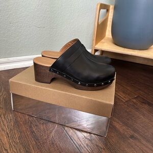 2.5" wood heel, 1" platform, feels like 1.5" heel