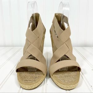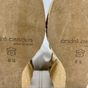 Stylish tan wedge sandals by Andre Assous. Features strappy design and comfortable wedge heel. Perfect for casual outings. Used only couple of times.