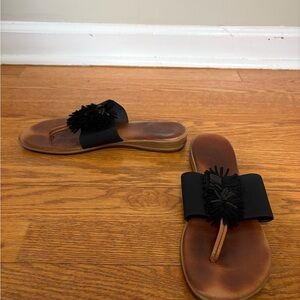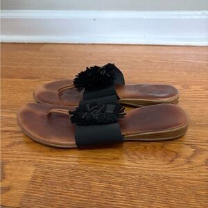 Andre Assous Woman’s Black Leather Sandals with Fringe Detail Size 9