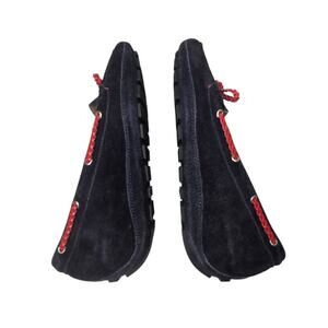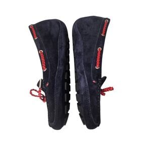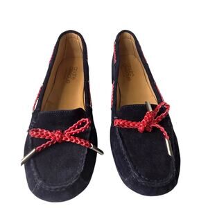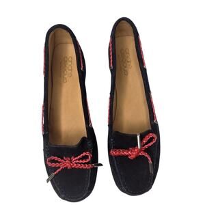 Andre Assous Womens Blue Suede Loafer Driving Moccasin Red Toe Bow SZ 9.5 Italy