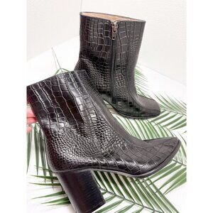 Andre Assous Women's Brown Leather Vilica Croc Print Chelsea Boots Size 7 NWOB