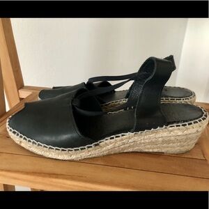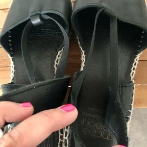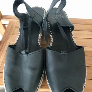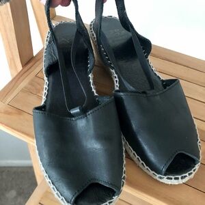 Andre Assous Denity leather black peep toe espadrilles sandals
