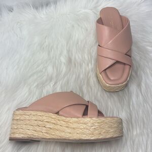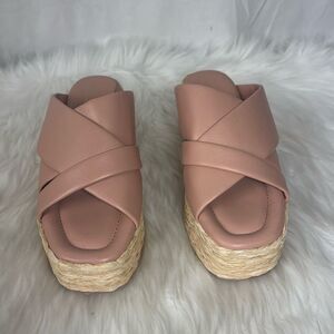 Andre Assous Women's Calesa Slide Sandals Blush Pink Leather/Raffia Sz 38/US 8