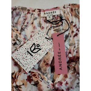Andrée By Unit Red Olive & Mustard Floral Long Sleeve Blouse Tie Neck Size S
