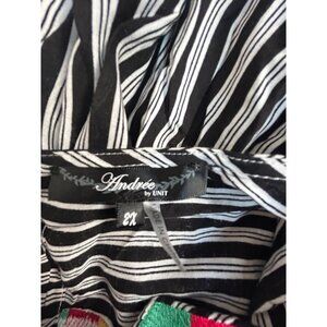 Andrée By Unit Womens Ivonca Striped Top With Color Block Embroidery 2X Black