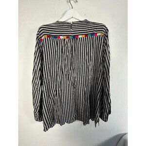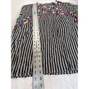 Elevate your wardrobe with this chic striped blouse featuring vibrant embroidery. Comfortable rayon fabric and a flattering 2X fit make it stylish and versatile.