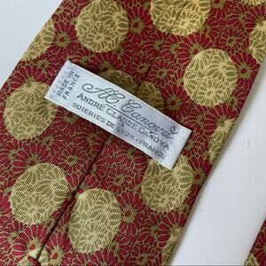 Andre Claude Canova Silk Tie Floral Polka Dot Red Olive Tan Made in France EUC