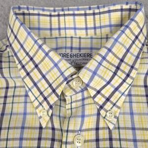 Andre Ghekiere Shirt Mens XL Plaid Button Down Made In France Cotton Long Sleeve