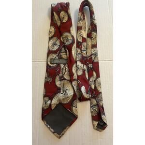 Andre Gianni Men’s Red Silk Tie Bicycle Schwinn Bikes Print 3.75” Made In USA