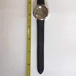 Beautiful bling watch with the jewelry box included. Andre Giroud water resistant stainless steel quartz watch. Black genuine ostrich leather band. Stainless steel face with sparkling floating simulated diamonds. Needs a fresh. Always an attention getter. Price is firm please.
