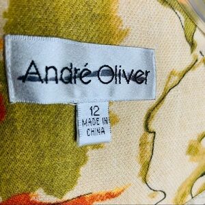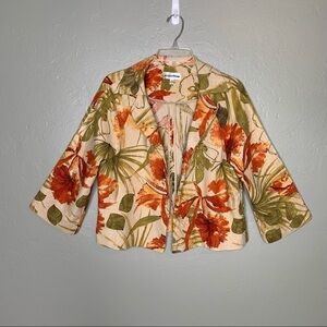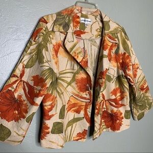 Andre’ Oliver Linen Blend Open Front Floral Blazer Size 12