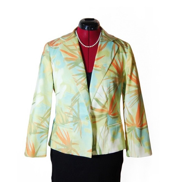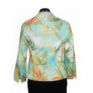 Stunning & chic multicolor floral 1 button blazer with lapel collar by Andre Oliver (Pierre Cardin's designer). Photo's don't do this justice, great pastel colors! 2 faux pockets on the front. Fully lined.