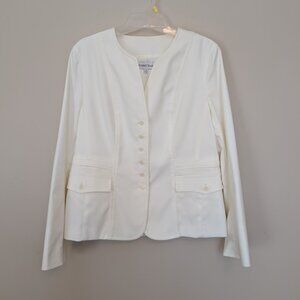 Andre Oliver lightweight white button front stretch jacket blazer 16